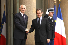 Ο Γάλλος πρόεδρος Νικολά Σαρκοζί συνόδευσε τον Ελληνα πρωθυπουργό Γιώργο Παπανδρέου κατά την αποχώρησή του από το προεδρικό μέγαρο, μετά το γεύμα εργασίας που είχαν και το οποίο διήρκεσε περίπου μιάμιση ώρα.
